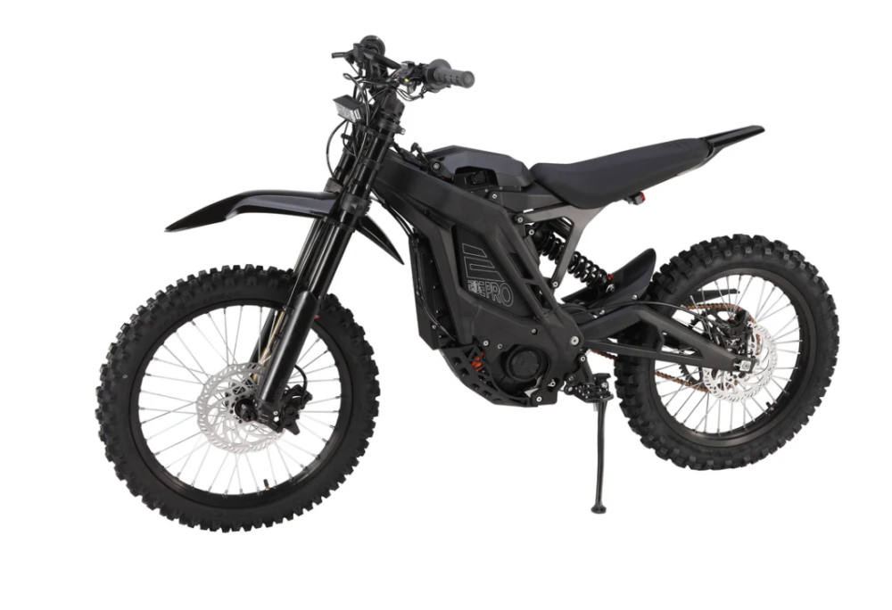 The E Ride Pro-SR is the ultimate electric dirt bike that redefines power and speed. With an astonishing 25kW peak power, this bike outpaces both the Sur Ron and Talaria, offering unrivaled performance. Equipped with a 72V 50Ah battery and a robust 16kW continuous power setup, it delivers unmatched torque and acceleration, ensuring you dominate any terrain.